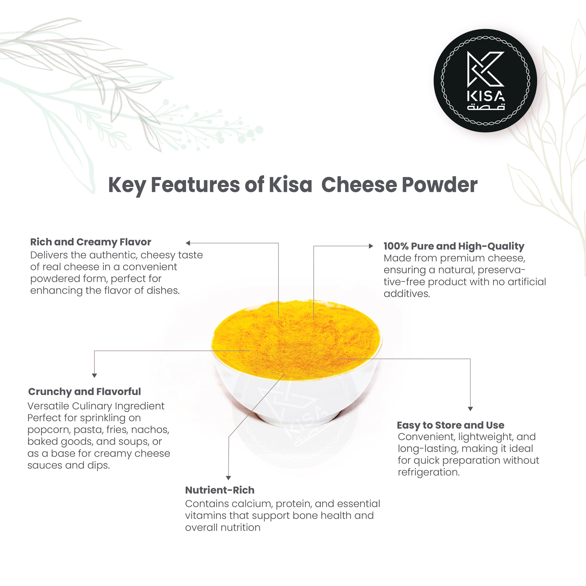 مسحوق الجبن هو مكون متعدد الاستخدامات ولذيذ مصنوع من الجبن المجفف، ويتم إنتاجه عادة عن طريق تجفيف وطحن أنواع مختلفة من الجبن إلى مسحوق ناعم. يستخدم هذا المنتج المريح لإضافة نكهة غنية وجبنية لمجموعة واسعة من الأطباق، بما في ذلك الفشار والصلصات والصلصات والوجبات الخفيفة. مسحوق الجبن شائع الاستخدام في الأطعمة المصنعة، مثل مخاليط المكرونة والجبن والوجبات الخفيفة بنكهة الجبن. يوفر طعم الجبن دون الحاجة إلى التبريد ويمكن إعادة تكوينه بسهولة بالماء أو استخدامه كتوابل. مسحوق الجبن غني بالكالسيوم والبروتين، ويعزز نكهة الوجبات مع تقديم بديل مناسب للجبن الطازج.