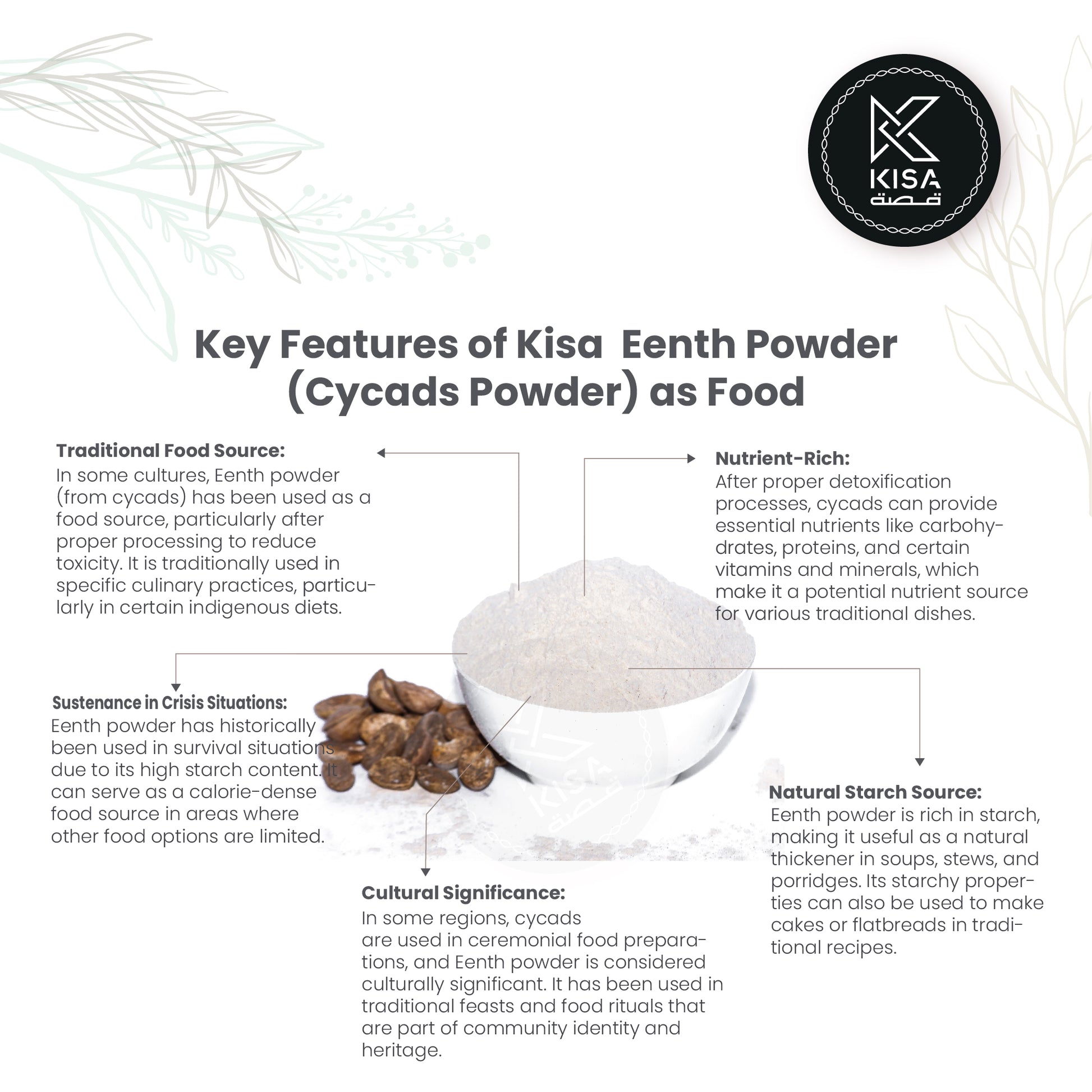 مسحوق السيكاد، المعروف أيضًا باسم إينث بودي، هو مكون تقليدي من مكونات الطعام في جنوب الهند مصنوع من بذور السيكاد المطحونة جيدًا. هذا المسحوق الفريد غني بالنكهة والعناصر الغذائية، وغالبًا ما يستخدم في طهي أطباق مثل إينث بيدي وأطباق مماثلة. معروف بطعمه الترابي والجوزي قليلاً. بفضل فوائده الغذائية وتعدد استخداماته، يعد مسحوق السيكاد مكونًا عزيزًا يضيف عمقًا وشخصية إلى مجموعة متنوعة من الإبداعات الطهوية.