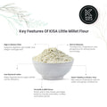Little Millet Flour is a nutrient-dense, gluten-free flour made from finely ground little millet, a traditional grain valued for its light texture and rich health benefits. It is an excellent source of dietary fiber that aids digestion, supports gut health, and helps prevent constipation. Packed with essential minerals like iron, calcium, zinc, and magnesium, it strengthens bones, improves blood circulation, and boosts immunity. With its low glycemic index, it is especially beneficial for diabetics and those managing blood sugar levels. The flour is also heart-friendly, as it may help lower cholesterol and support overall cardiovascular health. Naturally gluten-free, it is a safe and nutritious option for people with gluten intolerance or celiac disease. Its slow-digesting carbohydrates provide sustained energy, making it a great choice for children, athletes, and active individuals. Traditionally, Little Millet Flour is used to make rotis, dosas, idlis, porridges, and laddoos, while it also blends well into breads, pancakes, and baked goods. Its mild flavor makes it versatile in both savory and sweet dishes. Overall, Little Millet Flour is a wholesome superfood that offers a perfect balance of taste, nutrition, and wellness for everyday cooking.