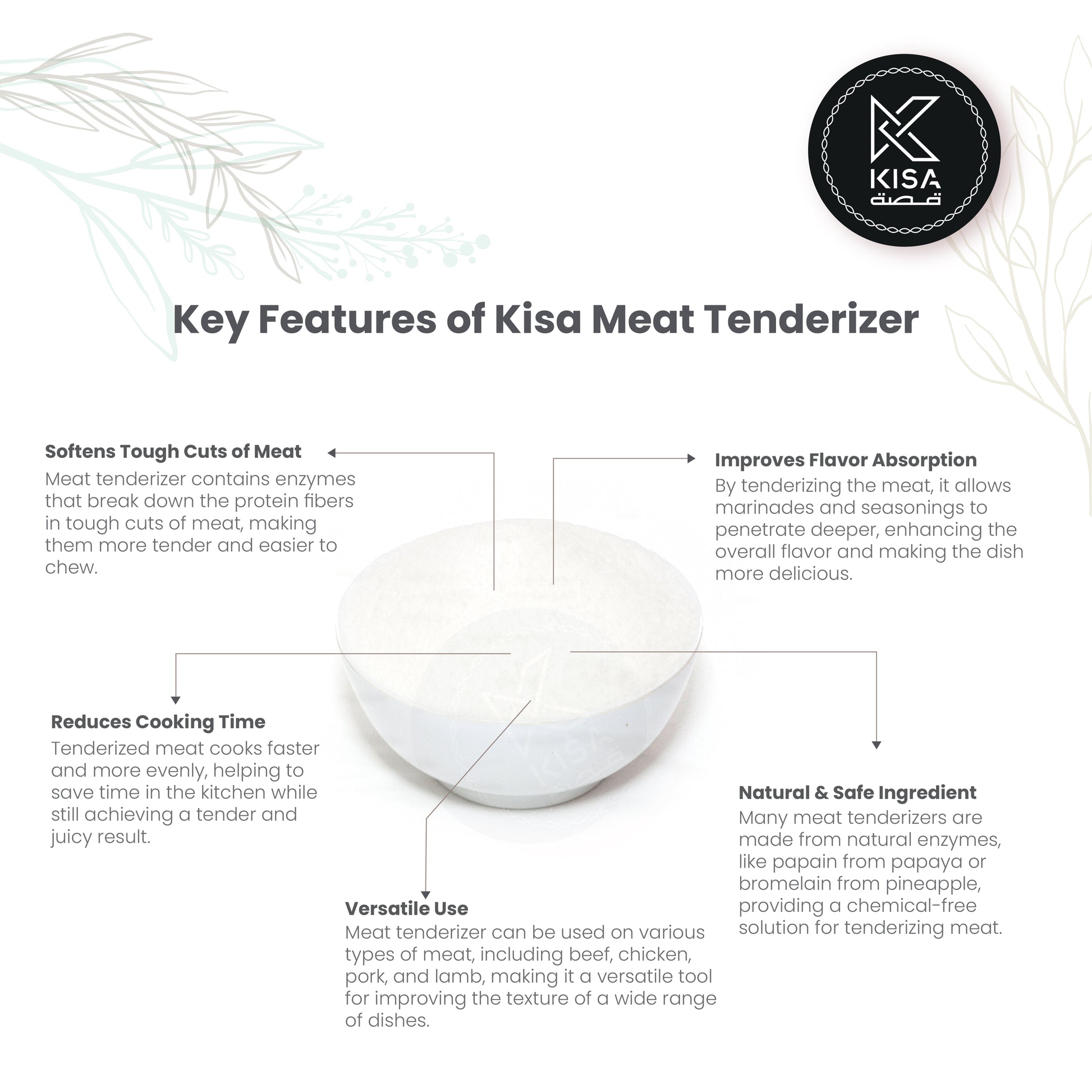 Meat Tenderizer Powder is a special blend of natural enzymes that works to break down tough meat fibers, making your meats incredibly soft and easy to chew. It helps to enhance the flavor and texture of various meats, including beef, chicken, and pork. The powder is easy to use—simply sprinkle it on your meat before cooking, allowing it to work its magic. It reduces cooking time, ensuring your meat cooks faster while remaining tender and juicy. Ideal for marinating or grilling, this tenderizer ensures your meats are perfectly prepared every time. With Meat Tenderizer Powder, you can elevate your cooking experience and enjoy restaurant-quality dishes at home.