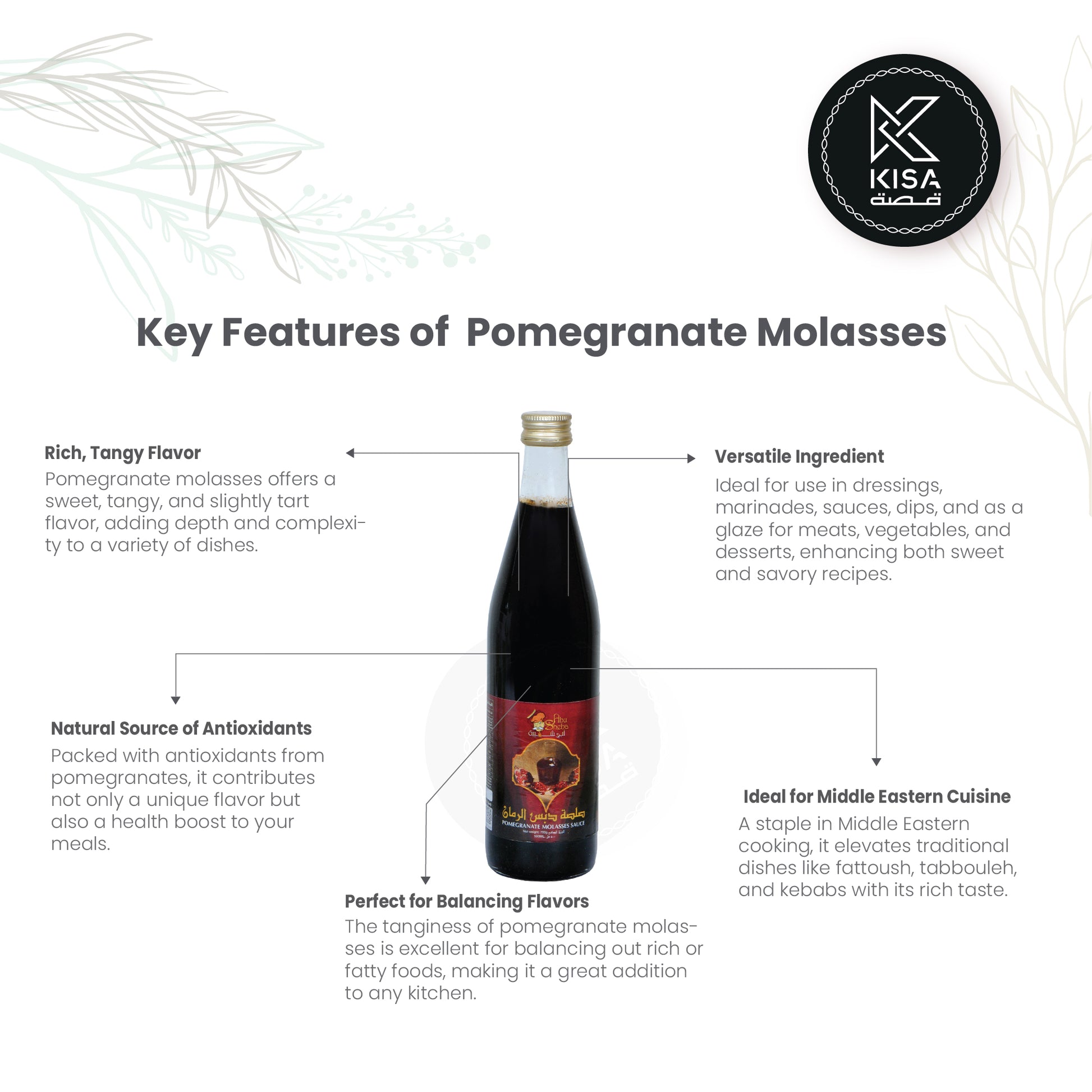 دبس الرمان، دبس الرمان، • دبس الرمان هو مركّز غني بالنكهة مصنوع من عصير الرمان الطازج، والمعروف بلونه النابض بالحياة وطعمه الحلو الحامض. هذا الشراب المليء بمضادات الأكسدة والعناصر الغذائية ليس فقط إضافة لذيذة للمشروبات والحلويات، ولكنه يعزز أيضًا الصلصات والمخللات والكوكتيلات بنكهته الفريدة. حلاوته الطبيعية ونكهته اللاذعة تجعله مكونًا متعدد الاستخدامات، مثاليًا للرش على الزبادي أو الفطائر أو السلطات. استمتع بالفوائد الصحية والمذاق الرائع لشراب الرمان كمكمل نكهة لإبداعاتك الطهوية!