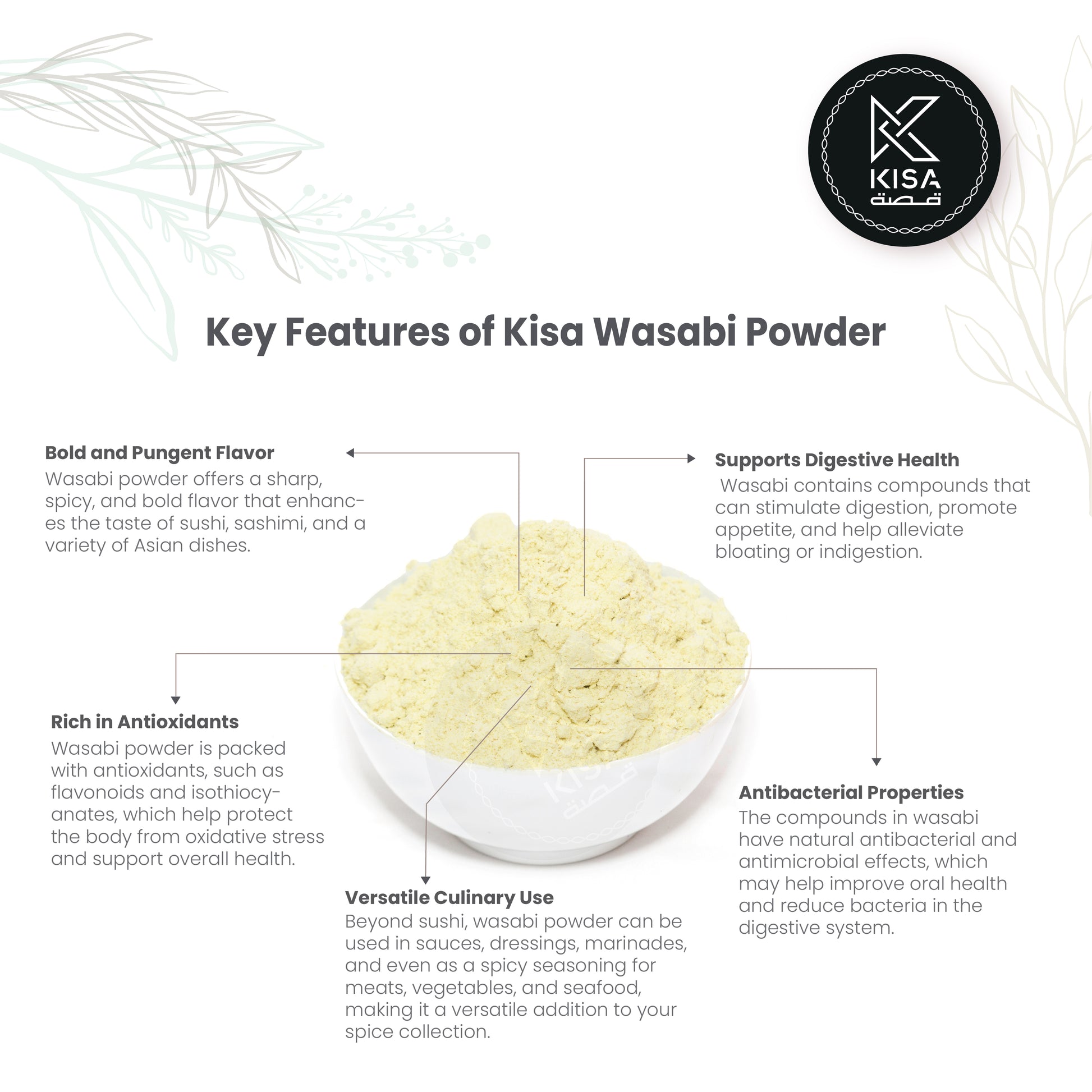 Experience the bold heat and zesty kick of KISA Wasabi Powder, made from high-quality wasabi root for an authentic taste. This finely ground powder delivers a sharp, pungent flavor that enhances sushi, sashimi, and Japanese dishes. Simply mix with water to create a smooth wasabi paste, perfect as a dipping condiment or flavor booster. Sprinkle it into dressings, marinades, or roasted nuts for an unexpected spicy twist. Its fiery, aromatic profile also pairs well with grilled meats, seafood, and even mashed potatoes for a gourmet touch. Elevate your culinary creations with KISA Wasabi Powder, the perfect balance of heat and flavor!