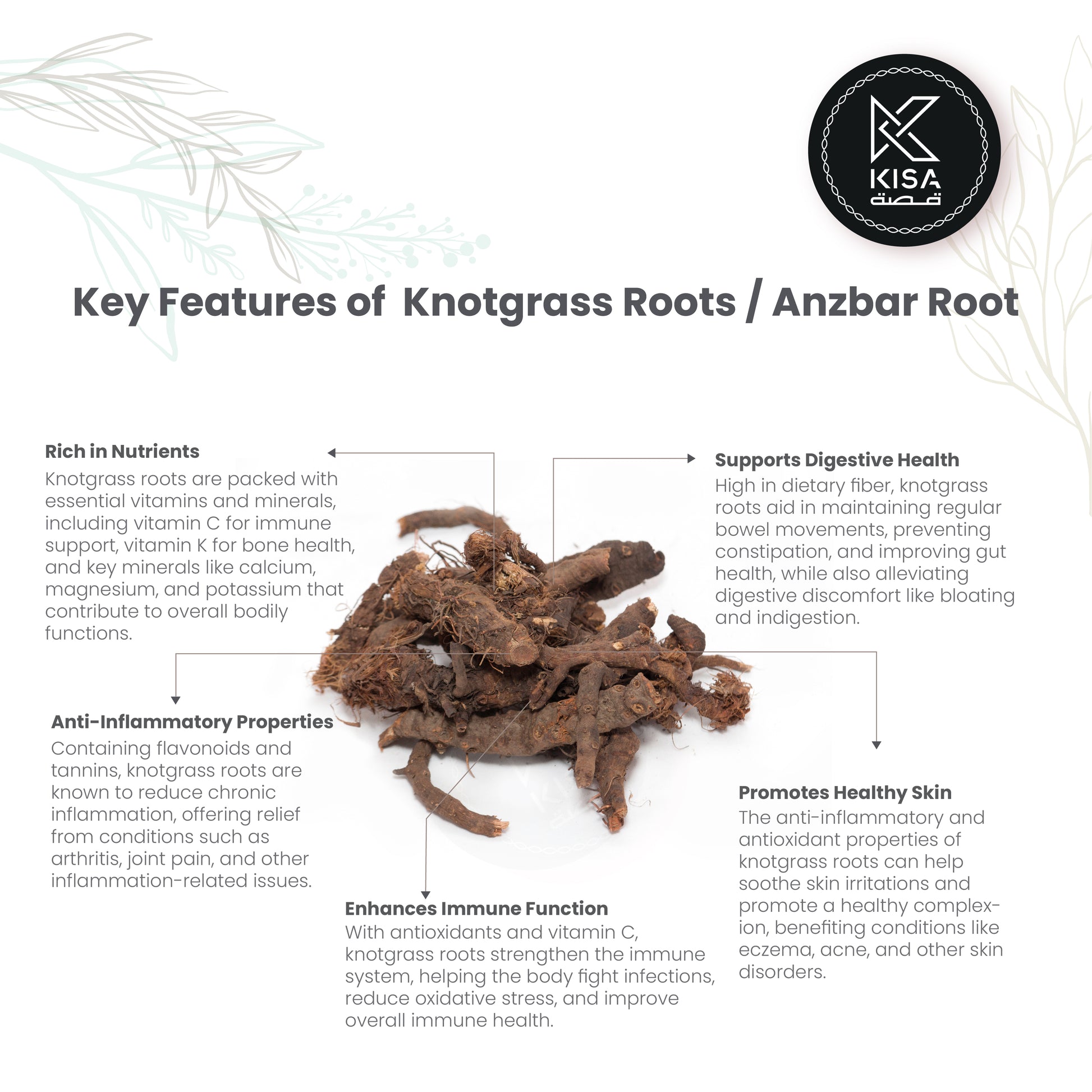 Anjabar, also known as Knotgrass Root (انجبار), is a traditional herb cherished for its aromatic qualities and natural essence. With a distinct earthy flavor, it is commonly used in herbal teas, tonics, and natural wellness blends. The root can also be infused into warm water for a soothing beverage or incorporated into topical herbal preparations for its aromatic and calming properties. Known for its versatility, Anjabar adds a rich, authentic touch to traditional herbal collections and daily wellness routines. Its unique flavor and natural aroma make it a favorite among herbal enthusiasts and those looking to experience time-honored herbal ingredients in everyday use.