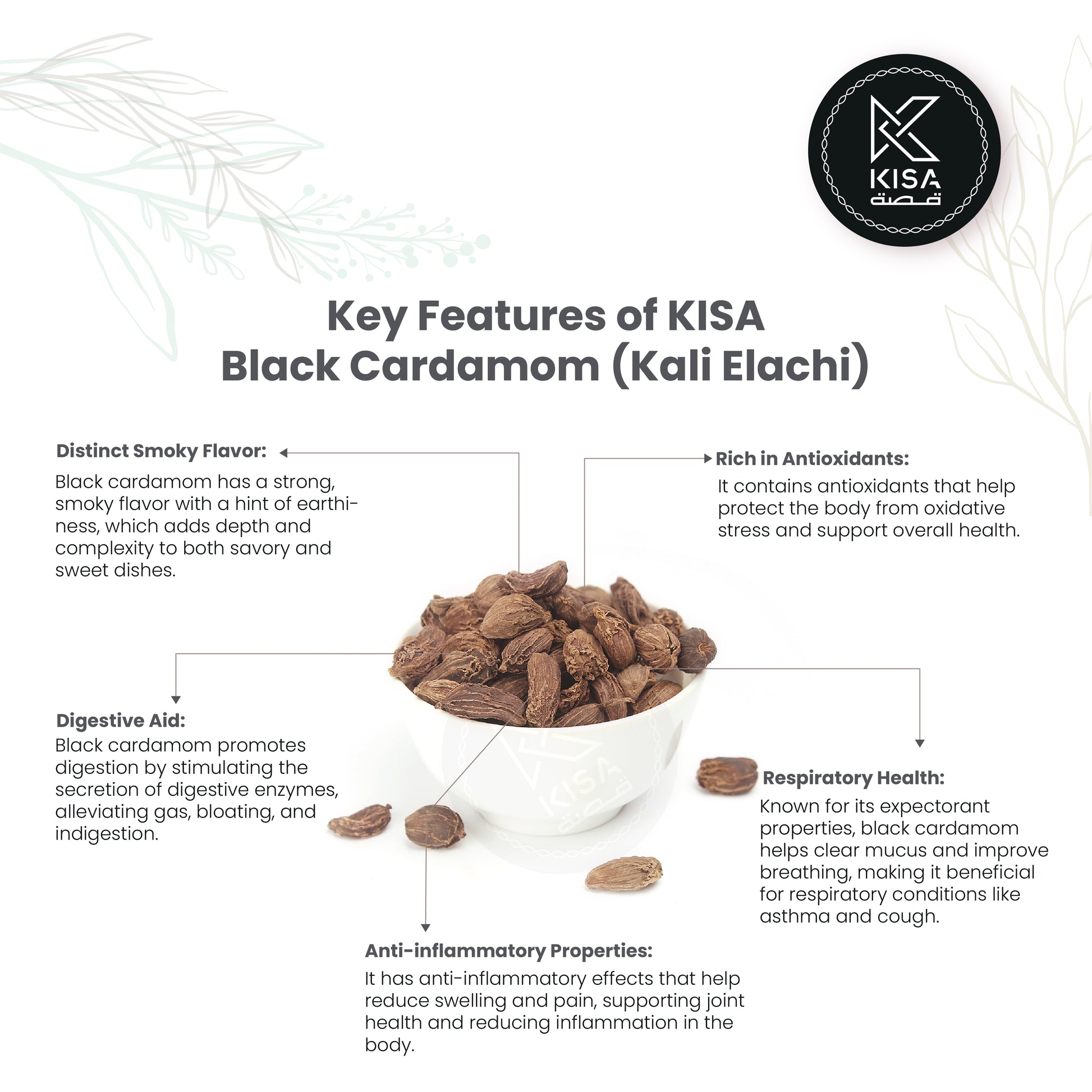 Black cardamom,Kala elachi or Bada elachi, scientifically known as Amomum subulatum, is a distinctive spice native to the Himalayan region. Known for its smoky, earthy flavor, black cardamom is characterized by its dark brown, wrinkled pods and strong aroma. Unlike its green counterpart, which is often used in sweet dishes and baking, black cardamom is typically utilized in savory recipes, adding depth to curries, stews, and rice dishes. Its unique flavor profile makes it a key ingredient in many traditional Indian and Asian cuisines. Additionally, black cardamom is valued for its potential health benefits, including digestive support and anti-inflammatory properties. Used whole or ground, this spice enhances both the taste and aroma of various dishes, making it a treasured ingredient in culinary practices.