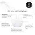 Icing sugar, also known as powdered sugar or confectioners' sugar, is a finely ground sugar used primarily for making frostings, glazes, and desserts. Its soft texture allows it to easily dissolve, creating a smooth and creamy consistency perfect for icing cakes, cookies, and pastries. Often mixed with a small amount of cornstarch to prevent clumping, icing sugar can also be dusted over desserts for an elegant finishing touch. Ideal for both baking and decorating, it adds sweetness and a delightful visual appeal to a variety of confections.
