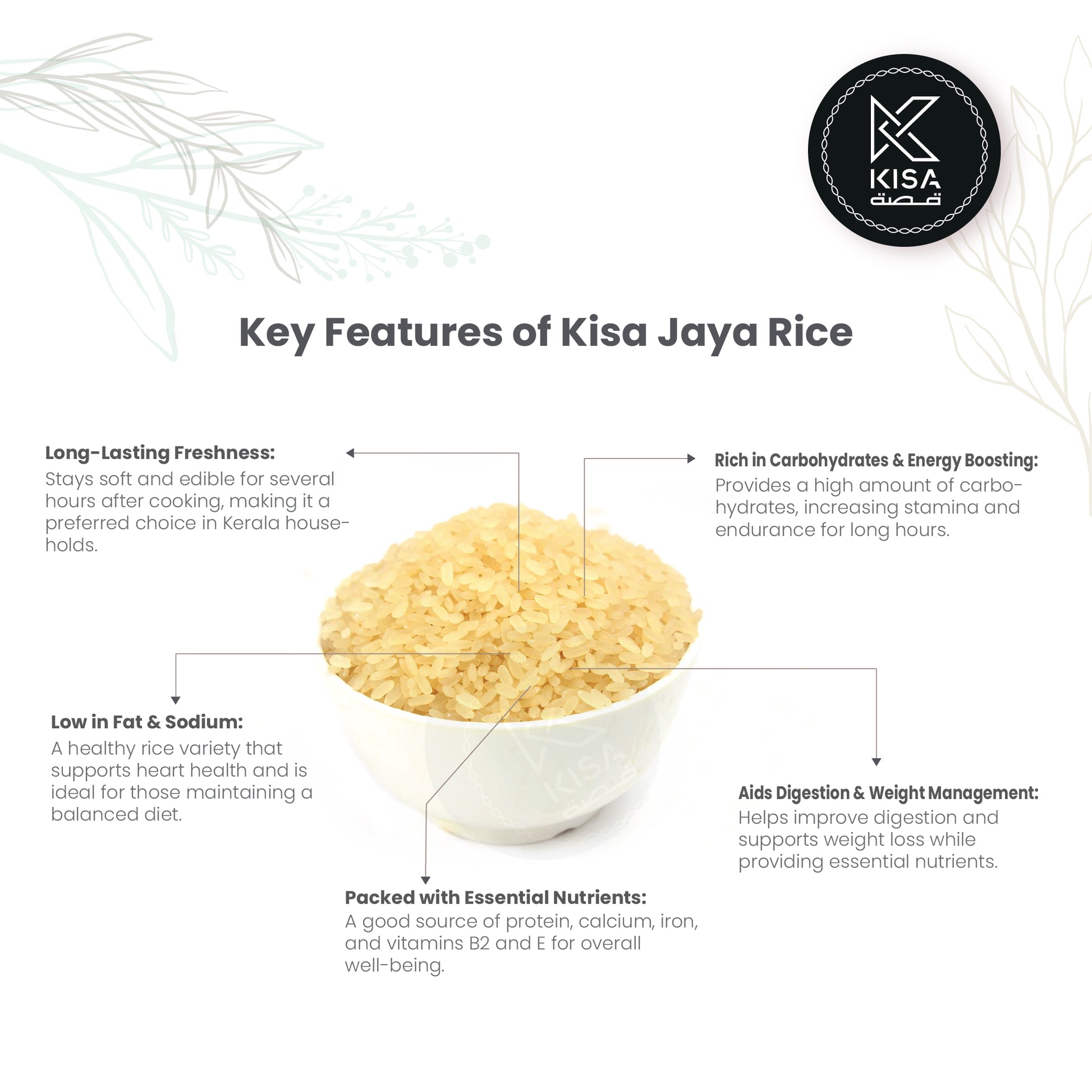 Jaya Rice is a premium variety of rice known for its rich taste, soft texture, and versatility in cooking. Grown in nutrient-rich soils, this rice is perfect for a wide range of dishes, offering a delightful aroma and consistency. High in essential nutrients and easy to digest, Jaya Rice is an excellent choice for everyday meals, providing both flavor and nutrition.
