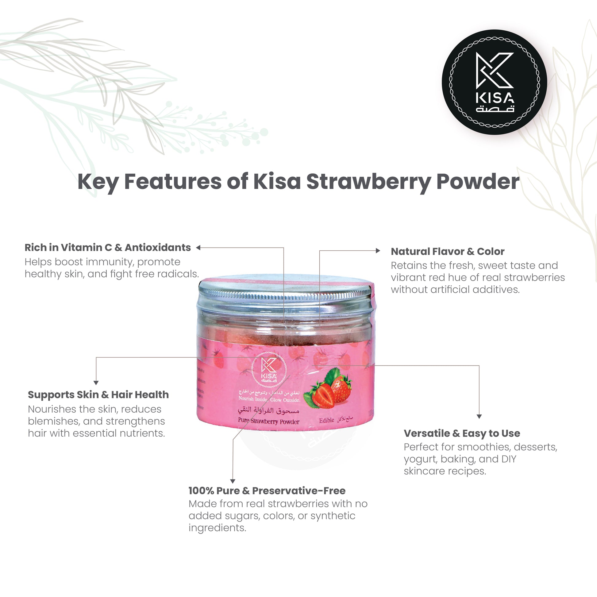 KISA PURE STRAWBERRY POWDER 100 GRM BOTTLE