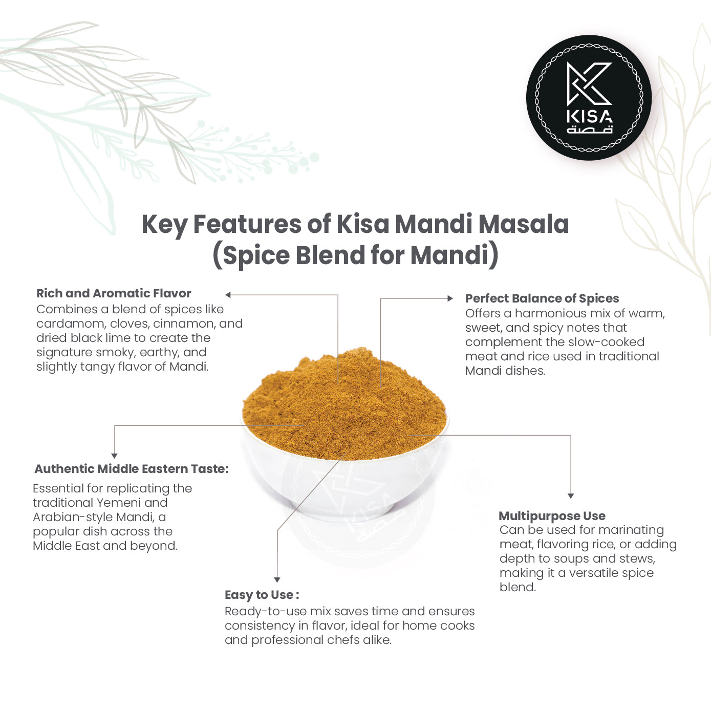 Mandi Masala Powder is a vibrant and aromatic spice blend traditionally used to prepare Mandi, a flavorful rice dish popular in Middle Eastern and South Asian cuisines. This expertly crafted blend typically includes spices such as cumin, coriander, cardamom, and cloves, delivering a rich, warm flavor profile that enhances the taste of meats and vegetables. Perfect for marinating or cooking, Mandi Masala Powder brings depth and complexity to your dishes, making it a must-have for any culinary enthusiast looking to create authentic, aromatic meals. Elevate your cooking with the delightful essence of Mandi Masala Powder!