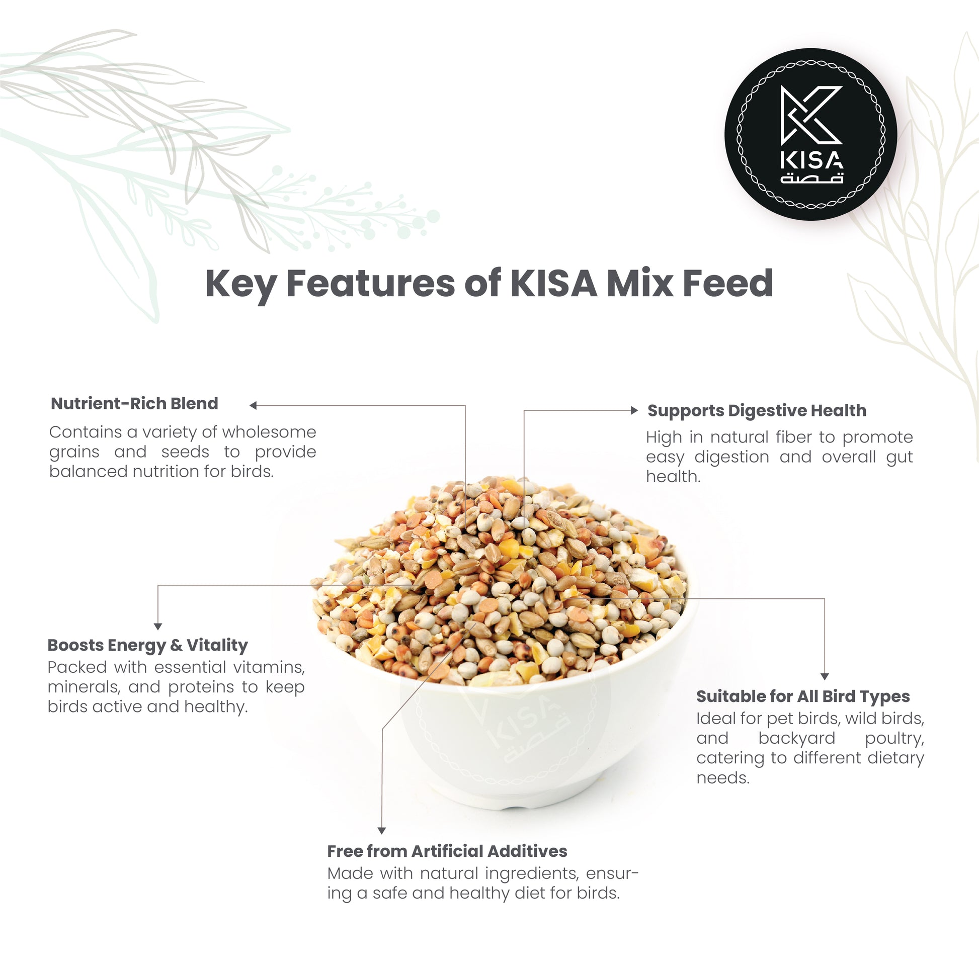 Mixfeed for birds is a carefully formulated blend of seeds, grains, and nutrients designed to support the health and vitality of various bird species. Ideal for pet birds and wild birds alike, this nutritious mix provides essential vitamins and minerals to promote optimal growth, energy, and feather health. Available in a range of formulations tailored to specific bird types, Mixfeed ensures a balanced diet that encourages vibrant plumage and overall well-being, making it a must-have for bird enthusiasts and caretakers.