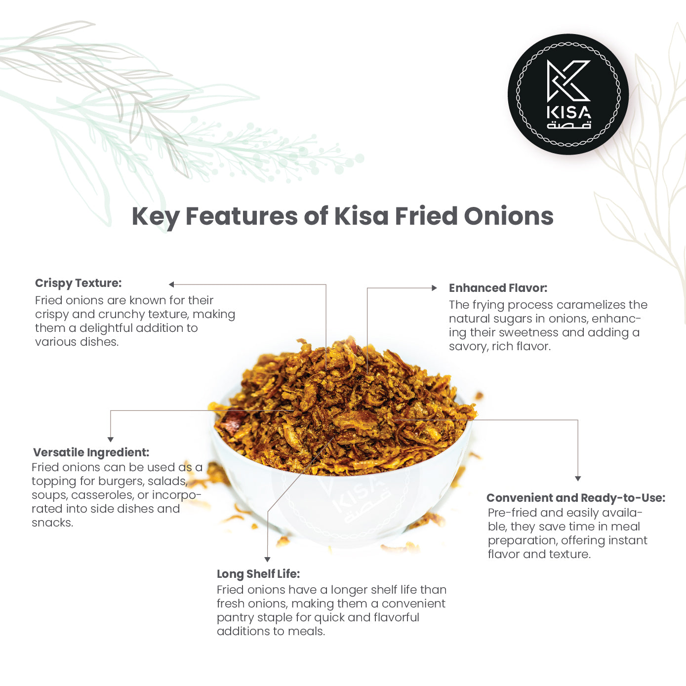 Fried onions are a deliciously crispy and golden-brown topping made from thinly sliced onions that have been sautéed or deep-fried until perfectly crunchy. Known for their rich, sweet flavor and satisfying texture, fried onions are a versatile ingredient commonly used in a variety of dishes, from casseroles and salads to burgers and soups. They add depth and a savory crunch, enhancing both the taste and presentation of meals. Whether homemade or store-bought, fried onions are a beloved addition that brings a delightful crunch and flavor to any culinary creation.