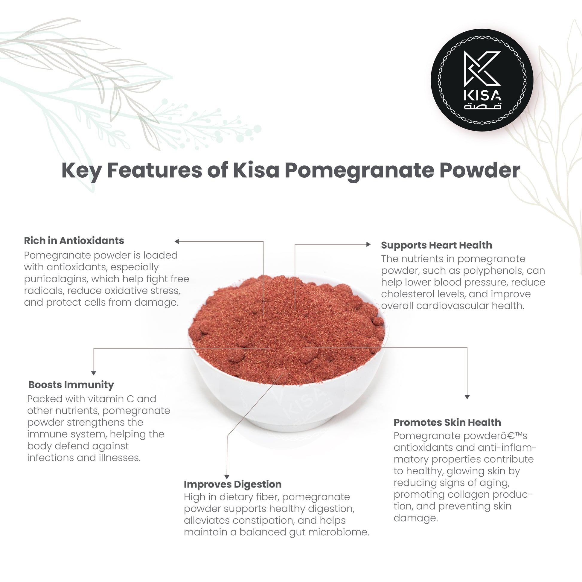 Pomegranate Fruit Powder بودرة الرمان is a vibrant and nutrient-rich powder made from dried pomegranate seeds, offering a tangy and slightly sweet flavor. It is packed with antioxidants, vitamins, and minerals, making it a great addition to your diet for promoting overall health. This versatile powder can be used in smoothies, juices, salads, yogurt, and baked goods, providing a burst of natural flavor and health benefits. Pomegranate Powder is also known for its anti-inflammatory properties and can help support heart health, improve digestion, and boost the immune system. It’s a convenient way to enjoy the benefits of pomegranate without the hassle of peeling and juicing the fruit. With its rich color and taste, this powder enhances both the flavor and nutritional value of any dish.