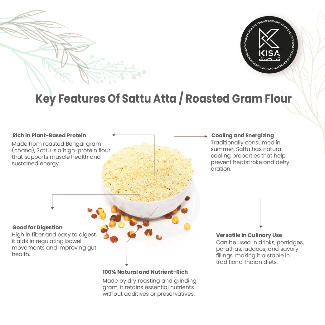 Sattu Atta, also known as Chana Sattu or Roasted Gram Flour, is a traditional superfood packed with protein, fiber, and natural energy. Made from finely ground roasted Bengal gram, it offers a nutty flavor and smooth texture. Sattu is widely used in both sweet and savory dishes—perfect for refreshing summer drinks, nutritious parathas, or protein-rich porridges. Its natural cooling properties make it ideal for daily consumption, especially in hot climates. Easy to digest and loaded with essential nutrients, it’s a wholesome choice for health-conscious lifestyles. Add Sattu to your routine for a natural boost of strength and satiety.