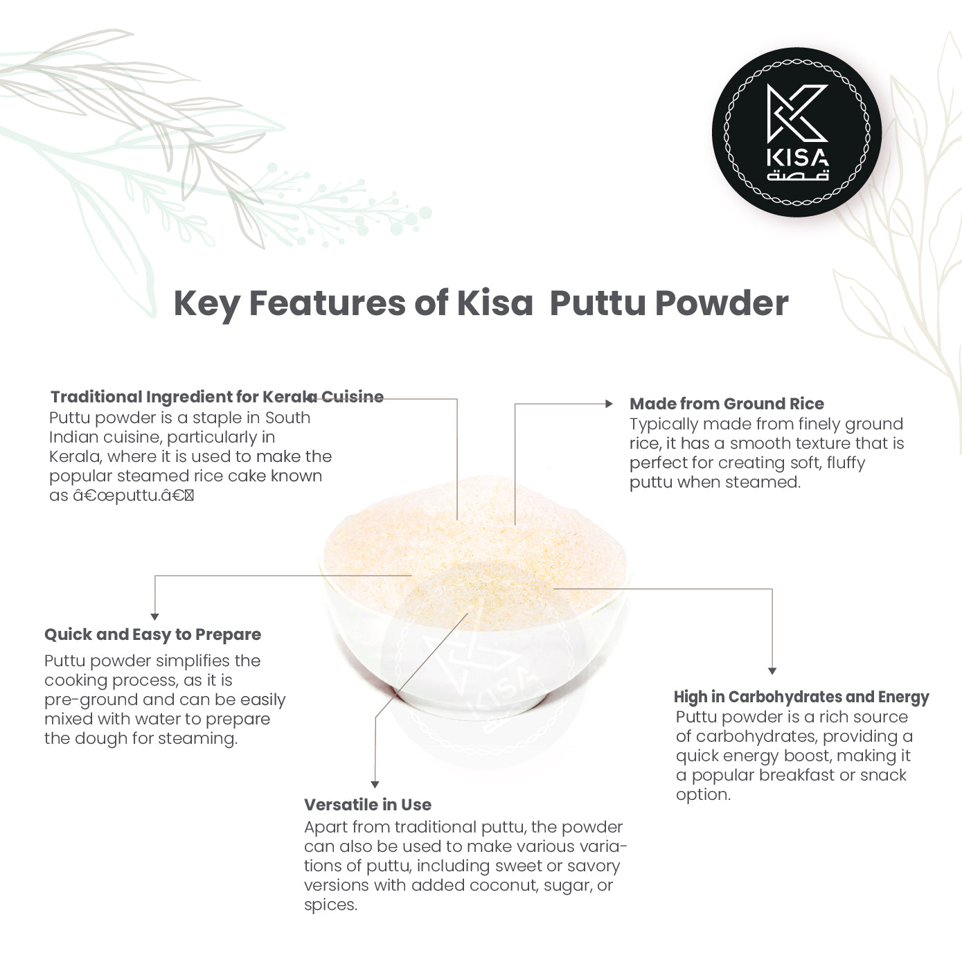 Wheat puttu powder is a finely milled flour made from whole wheat, specifically designed for making puttu, a traditional South Indian steamed dish. This versatile powder is rich in fiber and nutrients, offering a wholesome base for preparing soft, layered rice and wheat cakes. Often mixed with grated coconut and steamed in cylindrical molds, wheat puttu is enjoyed with a variety of accompaniments, such as curries or sweeteners. Its nutty flavor and texture make it a delicious and nutritious option for breakfast or snacks.